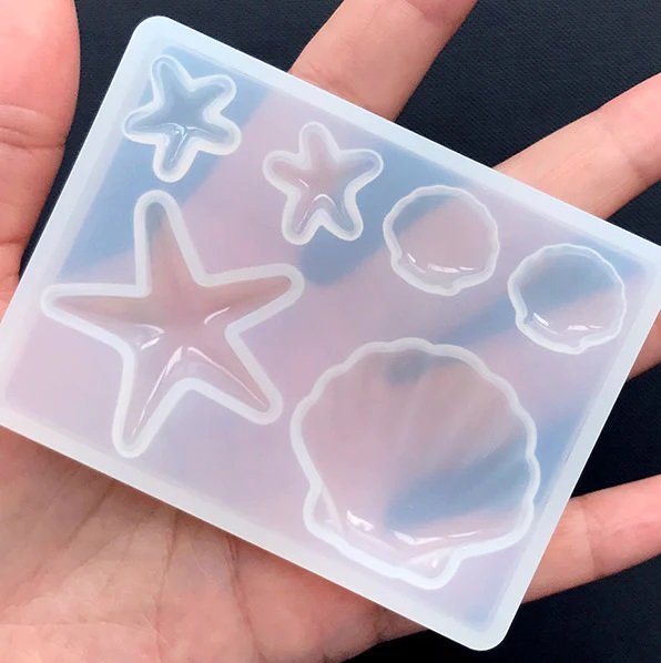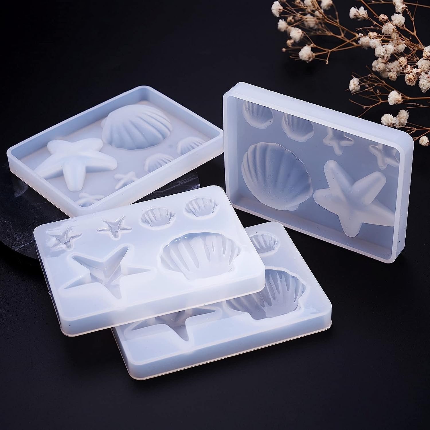 6 Cavity Mini 3D Sea Shell & Star Fish Shaped Clear